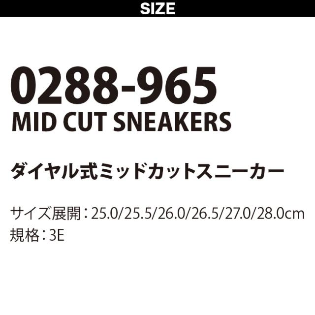 寅壱 2025年秋冬新商品 ダイヤル式ミッドカットスニーカー 0288-965 脱ぎ履きしやすい 簡単操作 3E ミドル丈 靴 シューズ 建設 現場 倉庫 作業靴 作業着 作業服 TORA
