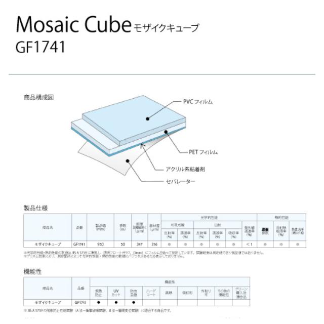 GF1741 サンゲツ 幅95cm×50M巻 窓フィルム Mosaic Cube(モザイクキューブ)