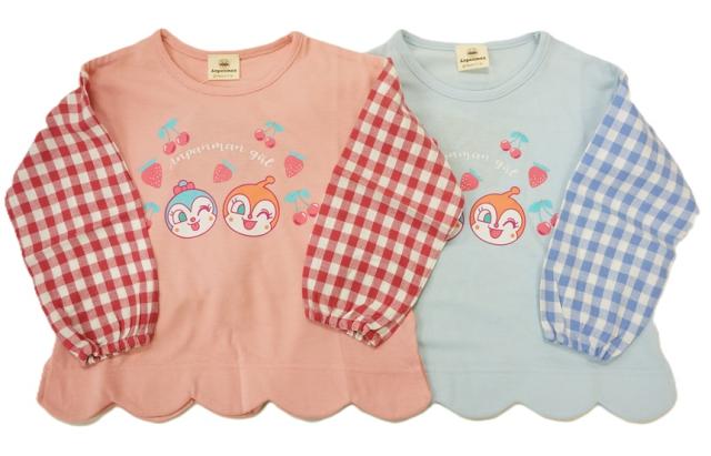 【メール便利用!送料込み】BANDAIそれいけ!アンパンマンガールドキコキ長袖Tシャツ袖チェック裾スカラップEA3476