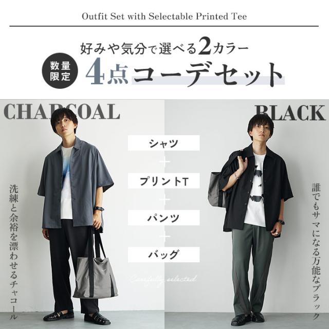 【選べる福袋対象外】 【送料無料】コーデセット メンズ セットアップ メンズ 福袋 メンズ 夏 コーディネート セット オーバーサイズ シャツ メンズ 開襟シャツ オープンカラーシャツ オーバーサイズ tシャツ ワイドパンツ スラックス テーパードパンツ ネックレス 韓国