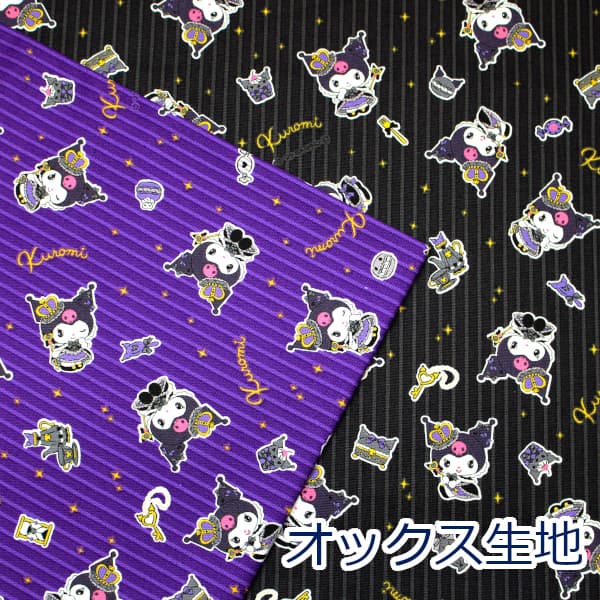 【10cm単位価格】 クロミ KUROMI KUキングダム ストライプ バク サンリオ オックス 綿100% 生地 布 約110cm幅 830359 入園入学 キャラクター ゆうパケット2m対応( ハンドメイド 手作り バッグ レッスンバッグ シューズ入れ 手芸 巾着 日本製 )