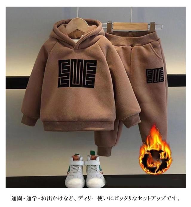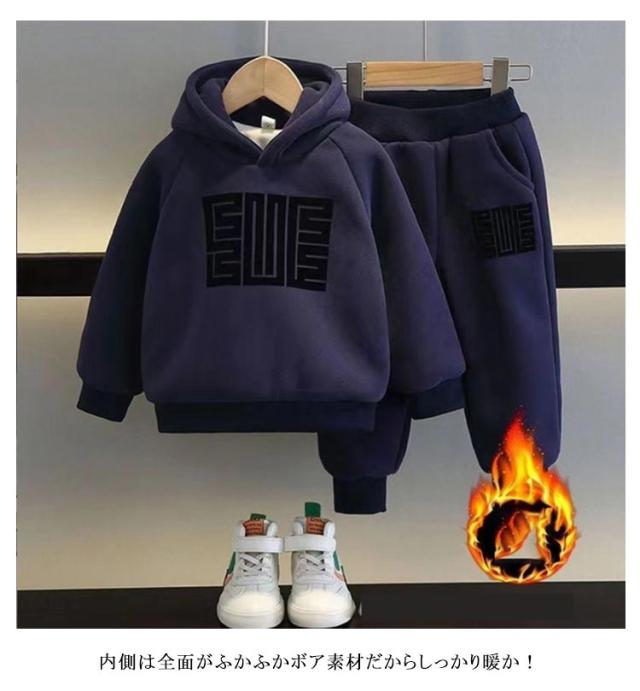 | 120?170cm!極暖裏起毛パーカー&パンツ上下セット 内側は全面がふかふかボア素材だからしっかり暖か! 通園・通学・お出かけなど、ディリー使いにピッタリなセットアップです。 | |