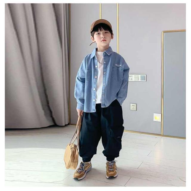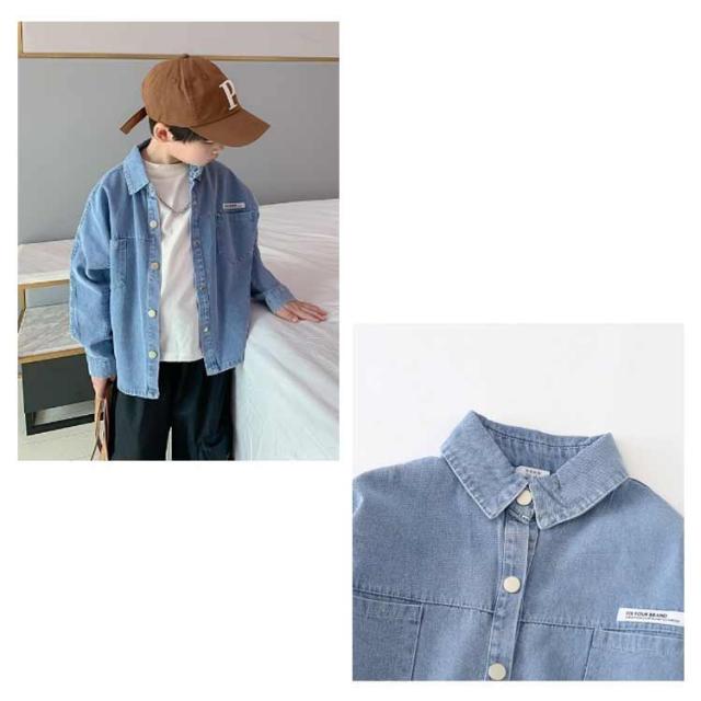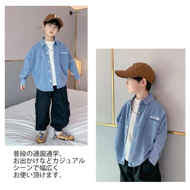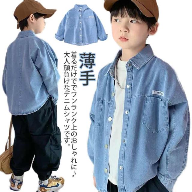 薄手 カジュアル おしゃれ 七五三 誕生日 男の子 ポケット付き 入学式 ジュニア トップス アウター 可愛い 長袖 ブラウス ボタン付き 子供服 ジュニア シンプル 羽織り 入学式 子供服 秋 春 シャツ 120 130 140 150 160cm デニムシャツ