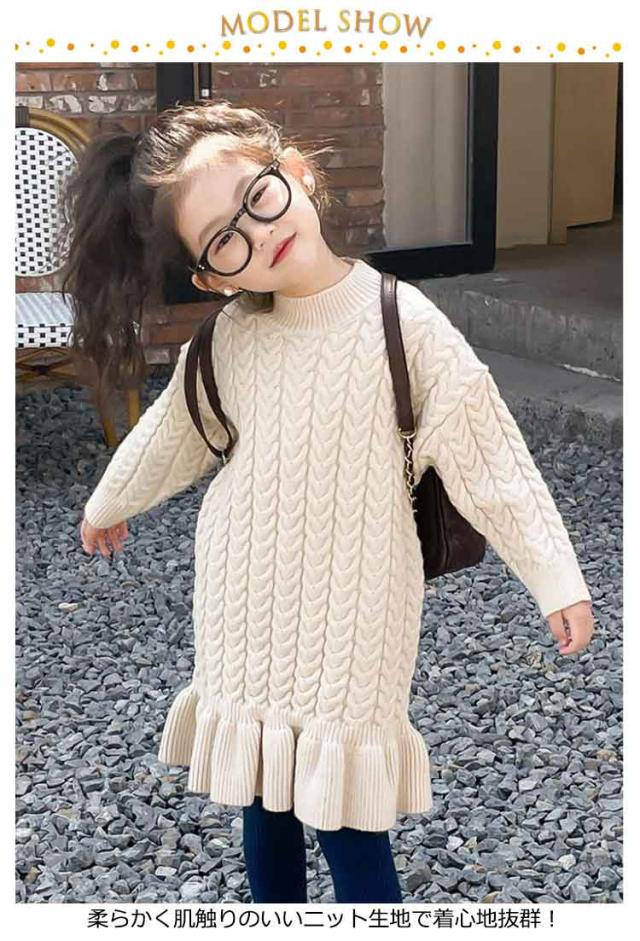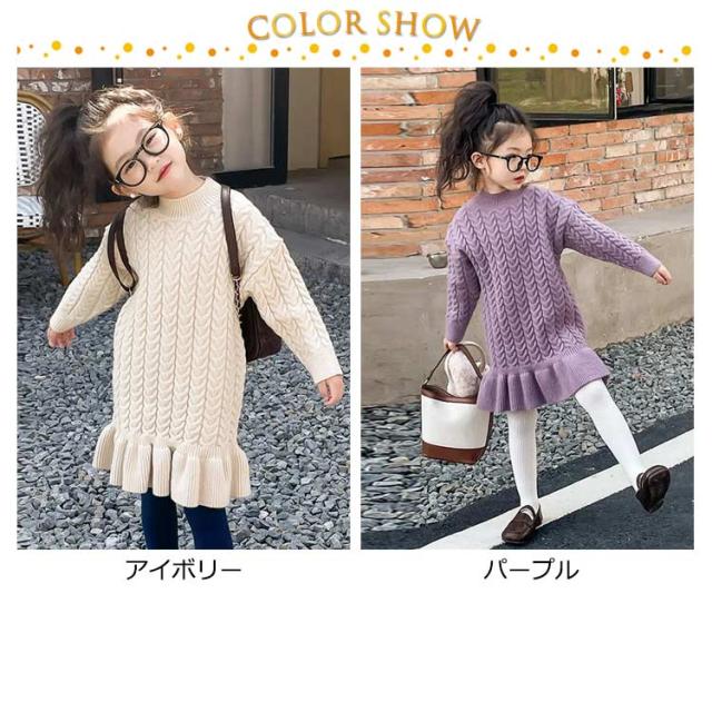 お姫様風 ベビー服 リブ編み 冬 ニットワンピース チュニック タートルネック 秋 かわいい 春 子供服 120 入園式 秋冬 ケーブル ロング丈ワンピース 長袖 結婚式 発表会 女児 子ども こども服 女の子 暖かい プレゼント 110 かわいい 130 140 キッズ