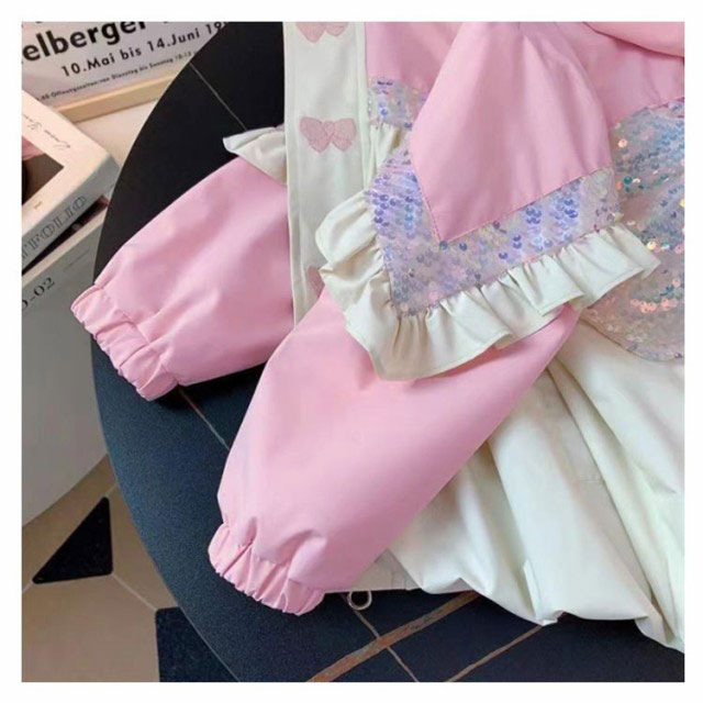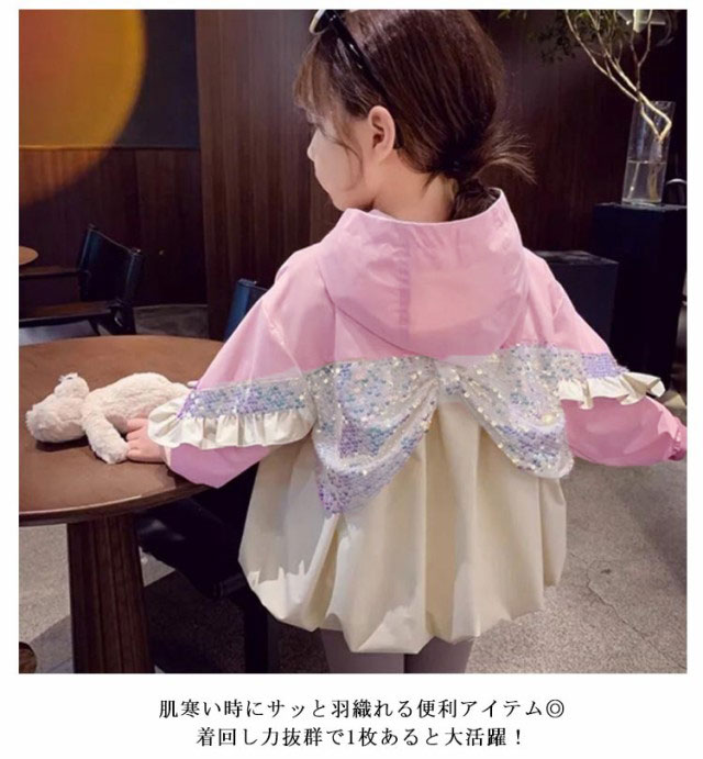 フード付き フリル×スパンコール 子供服 軽量 女の子 長袖 子供アウター 羽織り ジャケット 秋服 アウター ジャンパー ウィンドブレーカー 90 子供服 韓国 秋コート 春コート 子供服 かわいい フリル×スパンコール 100 110 120 130 140cm