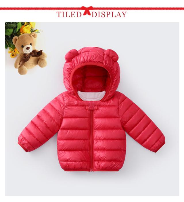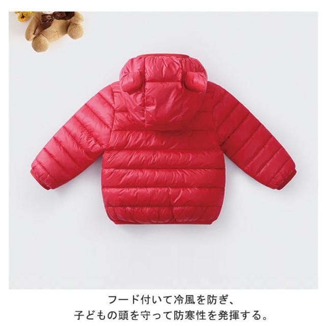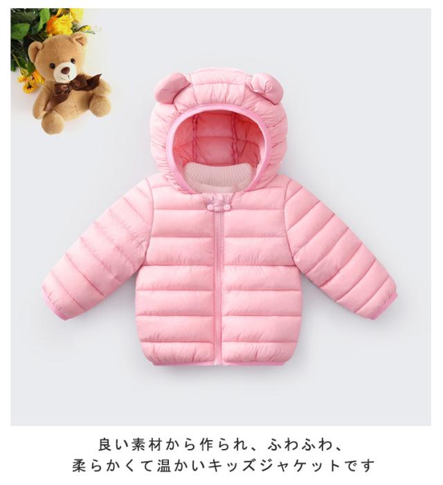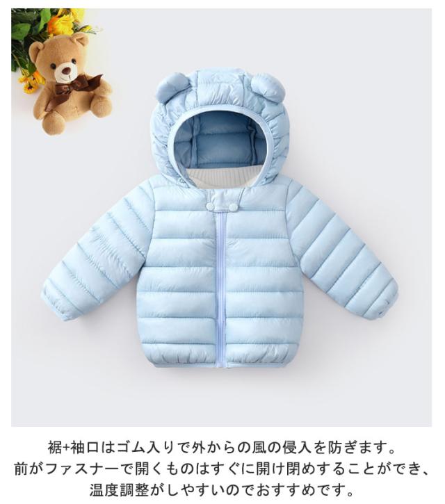 くま耳 ダウンジャケット コート ベビー キッズ 女の子 ベビー服 ジャンパー 中綿ジャケット 赤ちゃん くま耳 エコダウン アウター 男の子 無地 ジャケット フェイクダウン 子供 軽量 冬服 秋 冬 暖かい 防寒 80cm 90cm 100cm 110cm