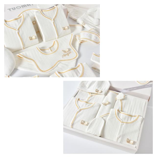 | 出産祝いに最適。ベビー服ギフトセット。 カバーオールにスタイ、枕やおくるみ、帽子、ミント、靴下など赤ちゃんが誕生してから必要な商品を詰め合わせたセットです。 上品なコット生地、お肌デリケートな赤ちゃんに安心。 おめかししてお出かけはもちろん、ルームウェア、パジャマにも最適です。 | |