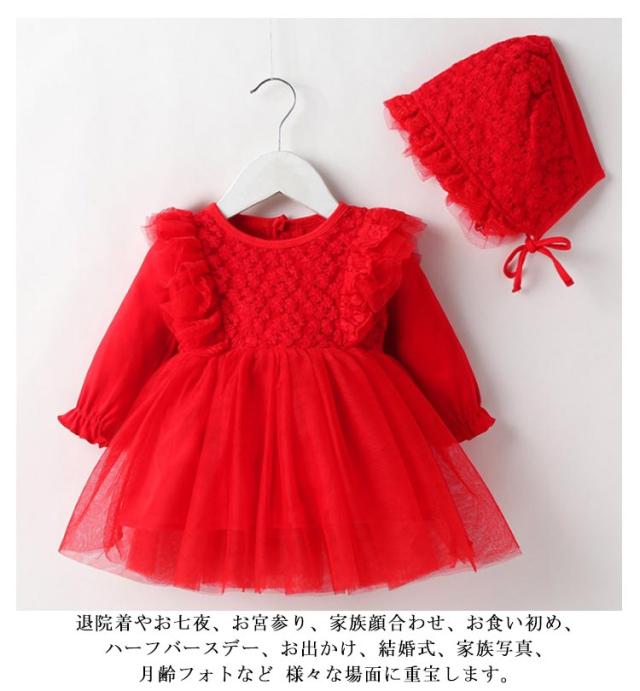 セレモニードレス お宮参り 新生児 女の子 ドレス 2点セット 帽子付き ドレスワンピース 秋 セレモニードレス ベビー お食い初め セレモニー 退院着 結婚式 春秋 100日 長袖 赤ちゃん ベビーセレモニードレス ピンク レッド お呼ばれ