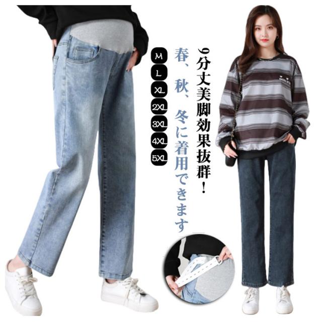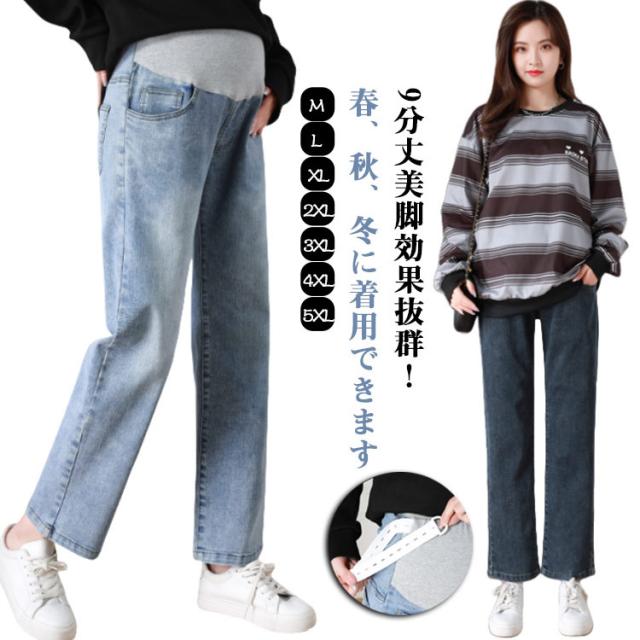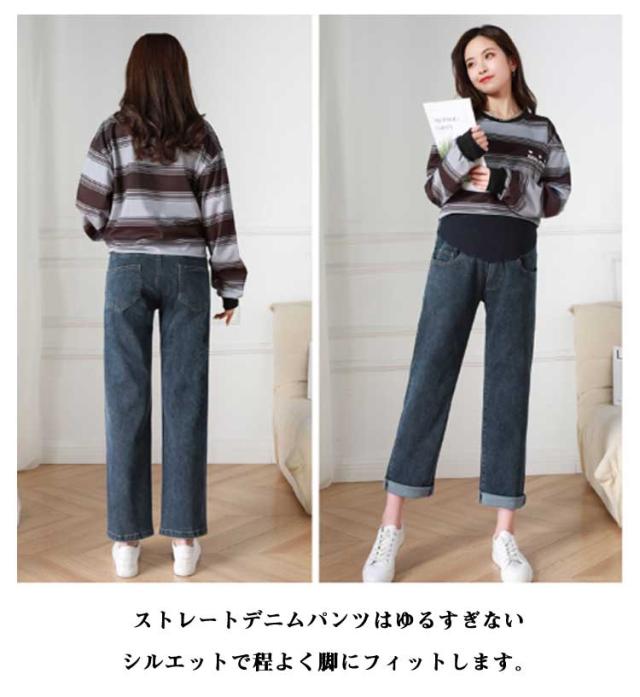 マタニティウェア ストレートデニム パンツ ストレート デニム かわいい おしゃれ 美脚 大きいサイズ ストレッチ マタニティパンツ マタニティズボン ジーンズ マタニティ ワイド マタニティ 妊娠初期 妊娠後期 臨月 産後 妊婦服 春 秋