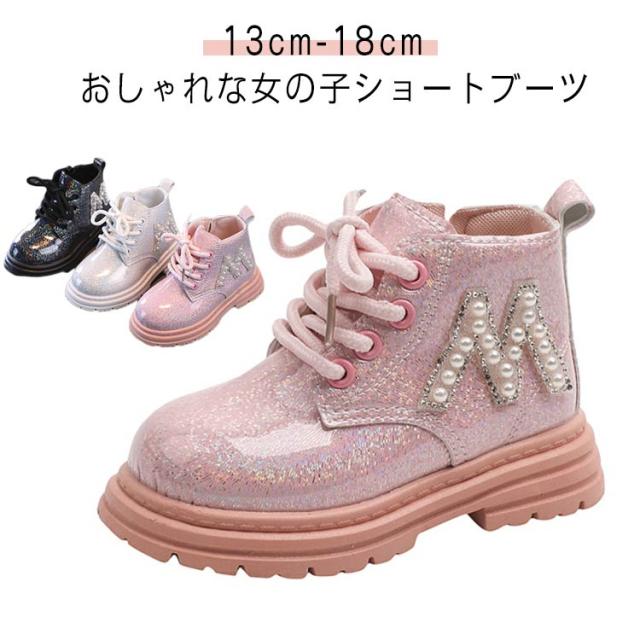 キラキラ 編み上げ かわいい 女の子 ブーツ 春 キッズブーツ ショート 靴 ショートブーツ 秋冬 シューズ 靴 子供用ブーツ ベビー 秋 おしゃれ 通園 ショートブーツ 通学 キッズ 歩きやすい 滑り止め 裏起毛なし サイドジップ 誕生日 ギフト プレゼント