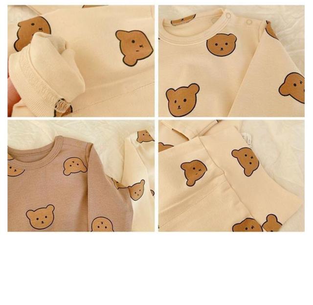 | 裏起毛有タイプ&裏起毛無しタイプ!春から冬にかけて大活躍!長袖ルームウェア。 可愛い熊柄デザインが揃っていて着替えも楽しい。 オシャレでかわいいデザインのトップス&腹巻き付きパンツ便利な2点セット! ウエスト部分はゴムになっていてお着替えもラクラク。 | |