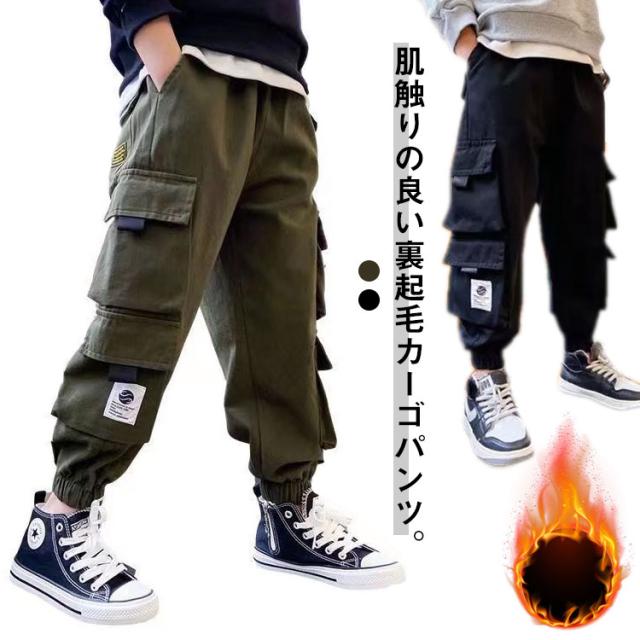 裏起毛 カーゴパンツ ズボン キッズ ジュニア ロングパンツ ワイドカーゴパンツ 男の子 長ズボン 秋 子供服 150 おしゃれ ワイドパンツ 裏起毛 カジュアルパンツ ボトムス 冬 あたたかい あったか 防寒 110 120 130 140 ボトムス 160 170