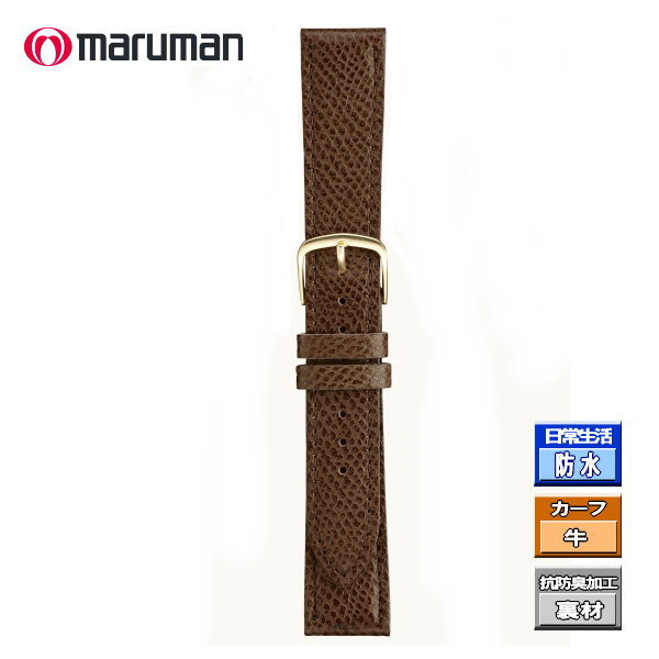マルマン 時計バンド 時計際幅 16mm 美錠幅 14mm 農茶 カーフ 型押しリザード バネ棒2本付き ネコポス便対応品