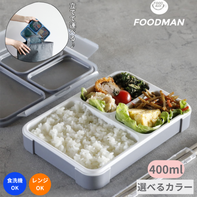 フードマン 薄型弁当箱 シービージャパン 400 汁がもれない 立てて運べる 洗いやすい 抗菌 食洗機対応 子供 大人 男子 女子 ワンプレート 一体型 おしゃれ FOODMAN CBJAPAN