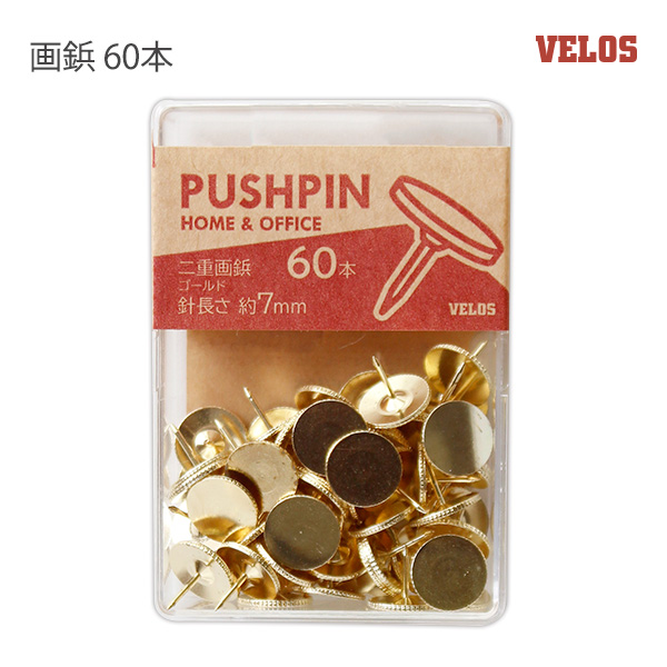 ベロス VELOS Xシリーズ 二重画鋲ゴールド XB-102G ゴールド 60本 針長さ 約7mm プッシュピン 掲示用 オフィス 学校 家庭 収納ケース入り