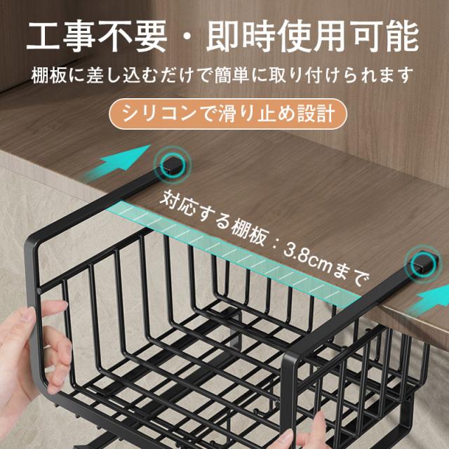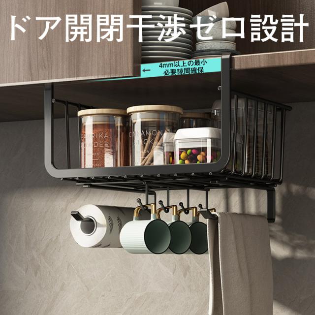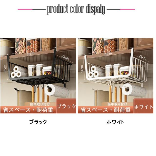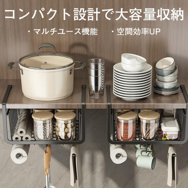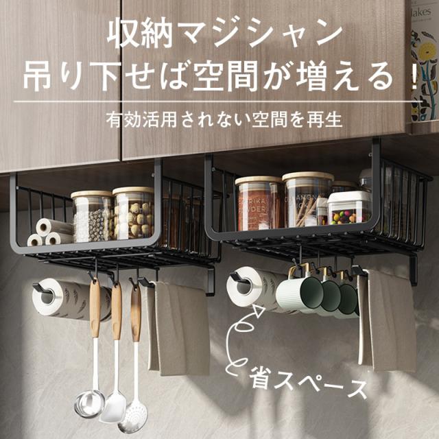 2点目1000円だけ!吊り下げラック 棚下ラック 吊り下げ棚 フック付き 多機能 戸棚下 収納 カゴ バスケット 省スペース 便利 キッチン収納