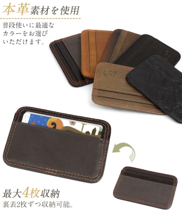 カードケース シンプル 薄型 スリム 軽量 本革 4枚収納 幅広 横長 カード入れ メンズ レディース ユニセックス ミニ 小さい コンパクト ギフト プレゼント 父の日