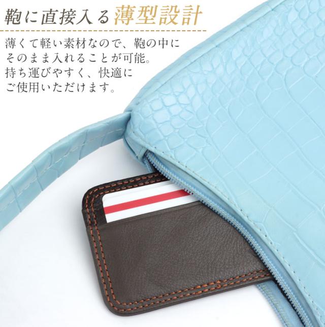 ※本商品は薄型設計の為、厚みのあるカード(クレジットカード等)を最大限収納すると、出し入れが難しくなる場合がございます。