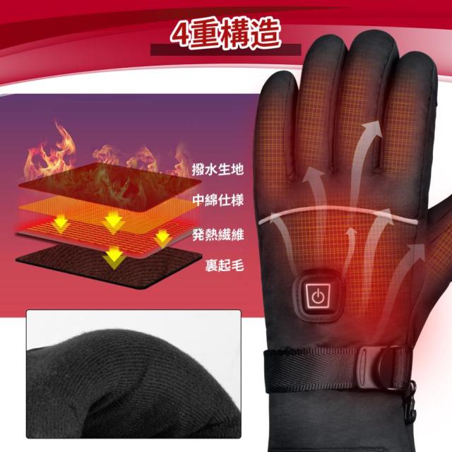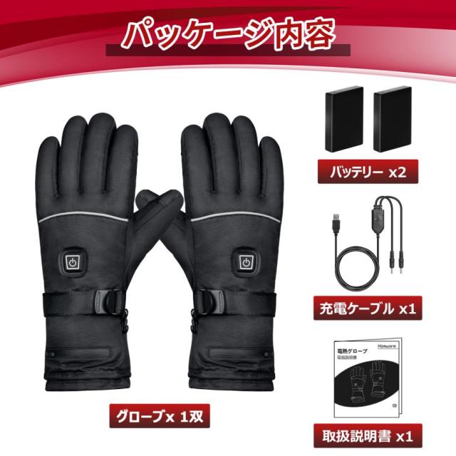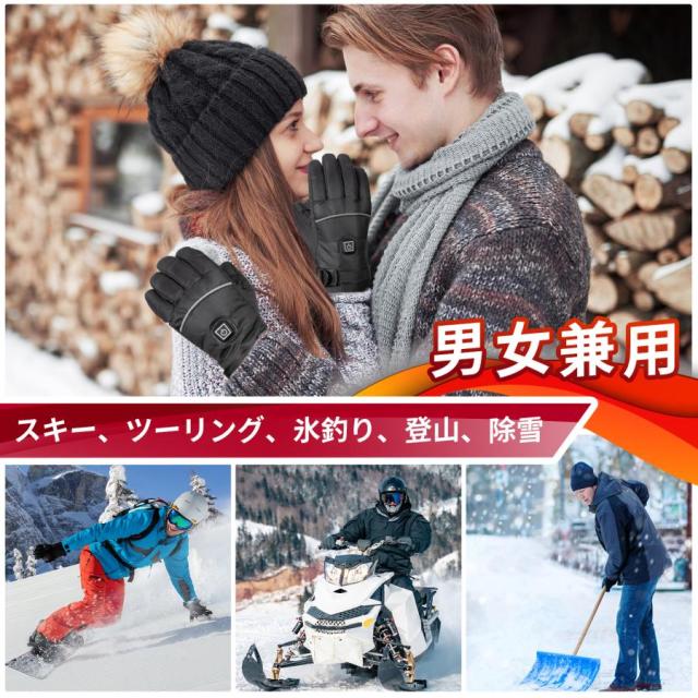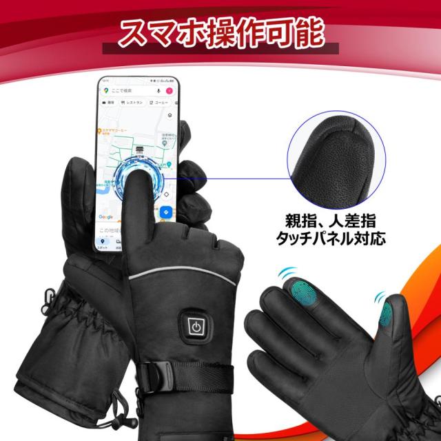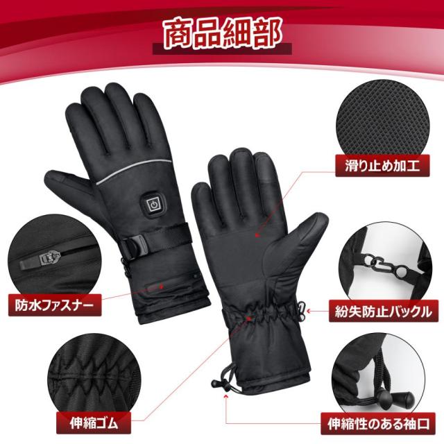 電熱グローブ バッテリー付き ヒーター手袋 3段階温度調節 DC 3.7V 5000mAh 充電式 バッテリ防寒保温 スマホ対応 滑り止め 防風 防水 加熱グローブ