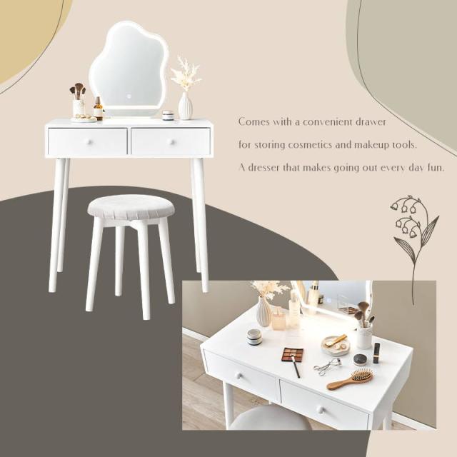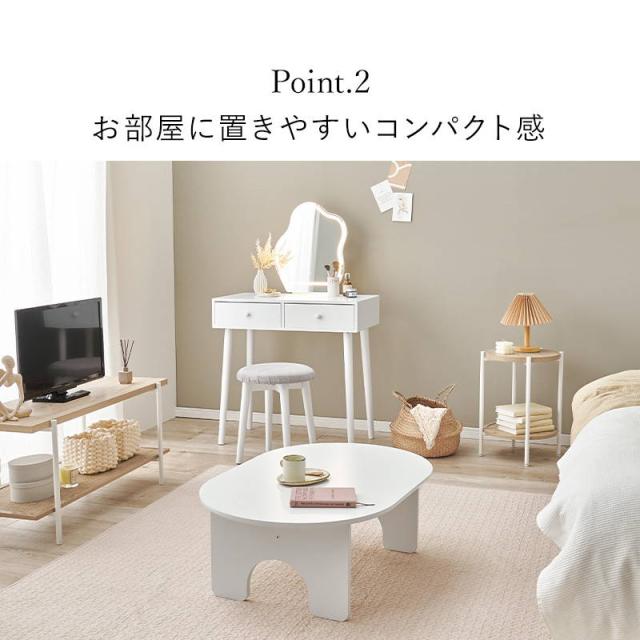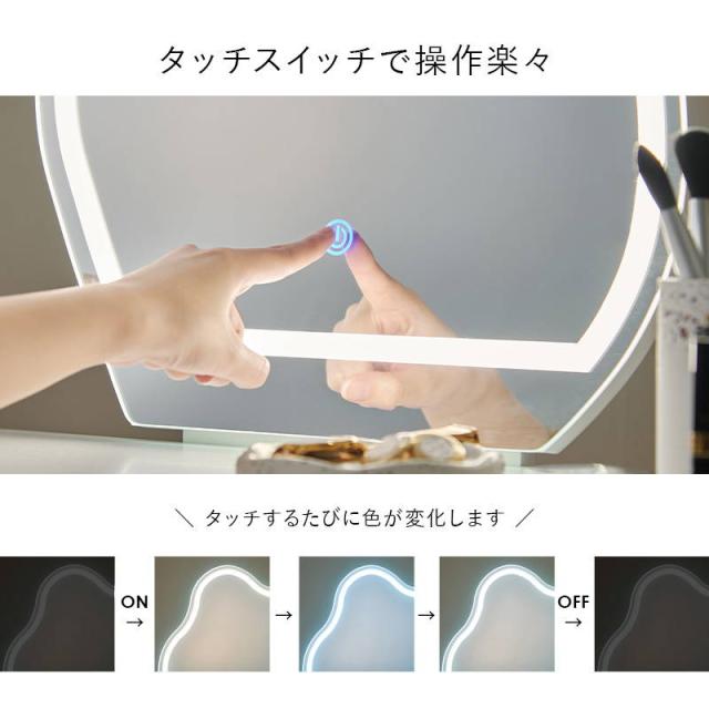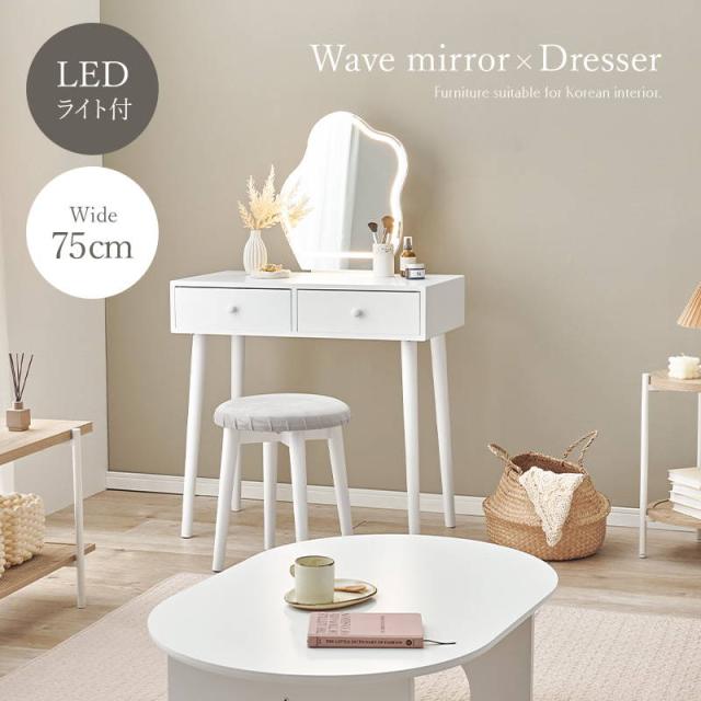 ドレッサーデスク 鏡台 白 ホワイト LED女優ライト ミラー付き 化粧台 幅75cm スツールセット