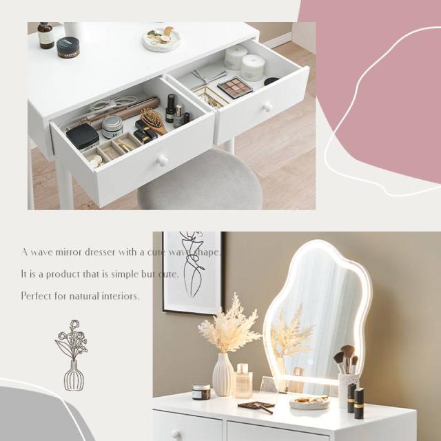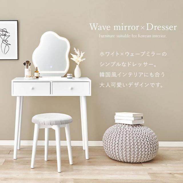 ●ホワイトのシンプルな本体に特徴的なウェーブミラーを合わせた大人可愛いデザインが魅力的。