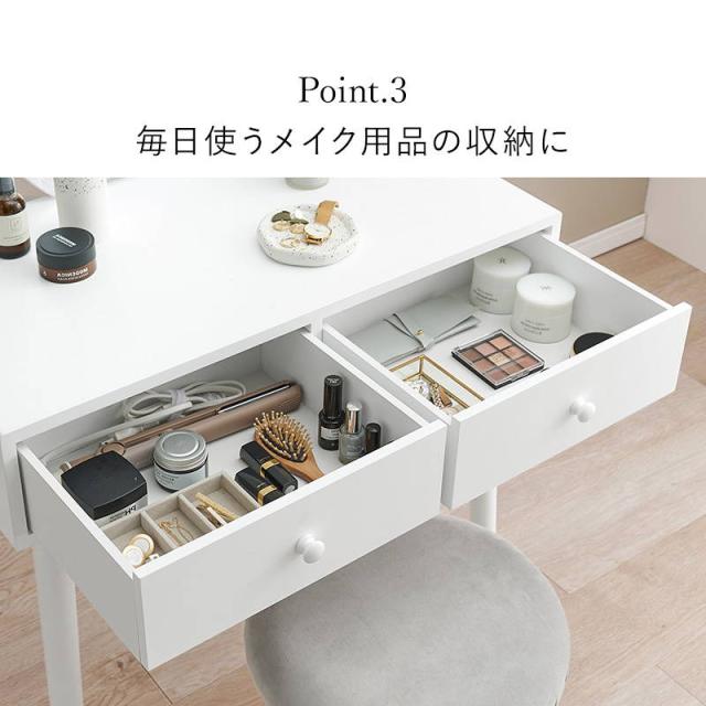 ●天板下には大容量の引き出し収納が2杯付きでメイク道具もまとめて収納可能です。