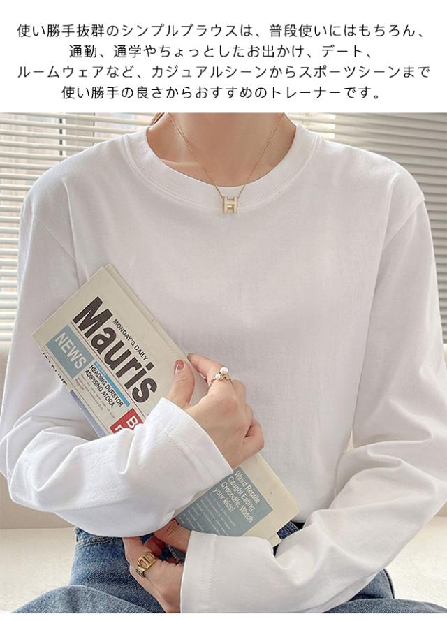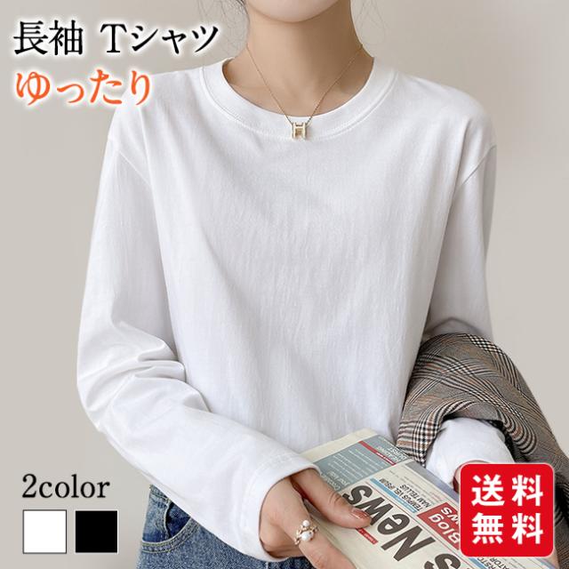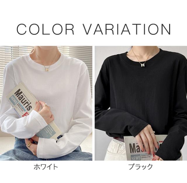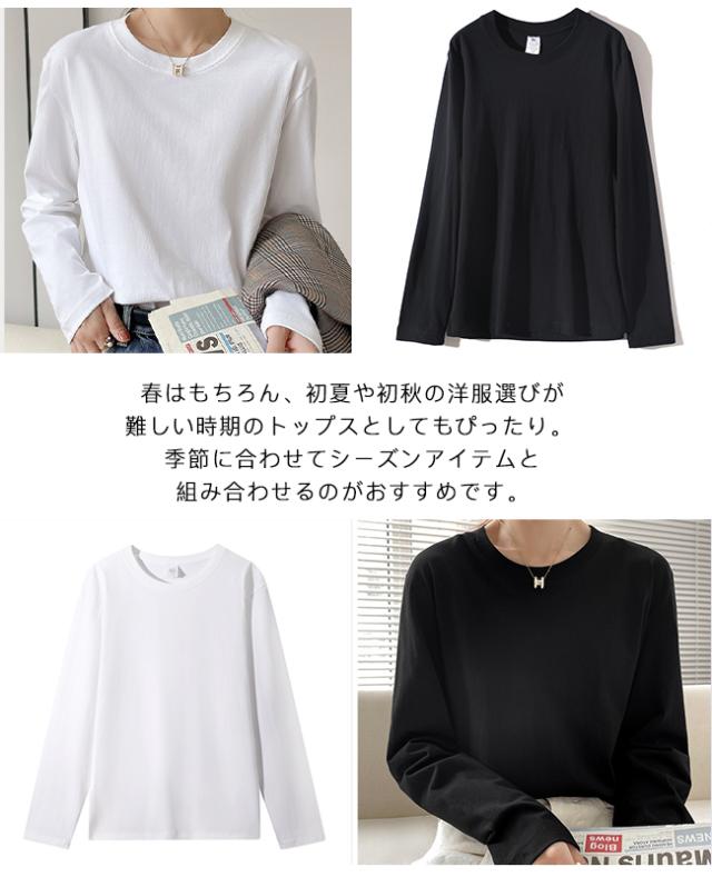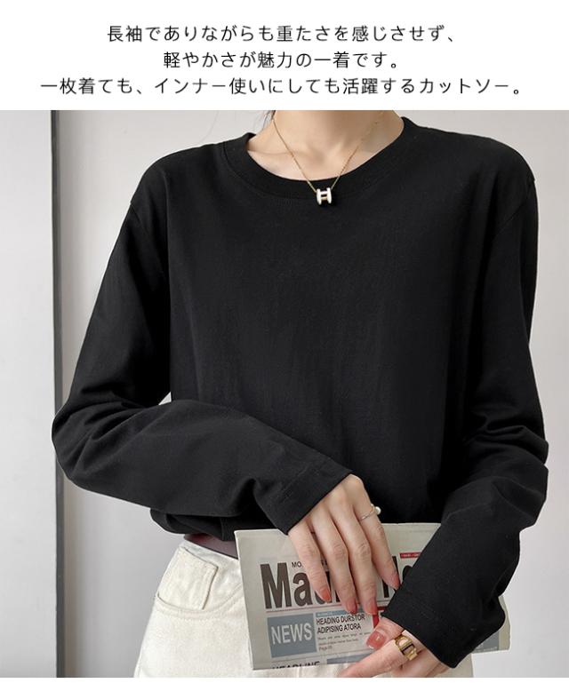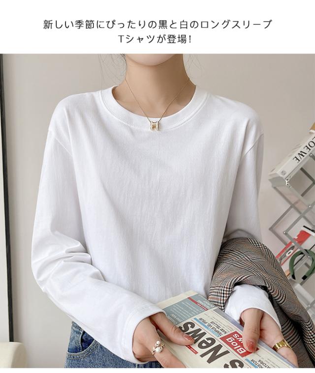 秋新作 長袖tシャツ トップス カットソー クルーネック 無地 カジュアル ゆったり オーバーサイズ 着痩せ 丸首 重ね着 インナー ゆったり 伸縮性 カジュアル シンプル 白 黒