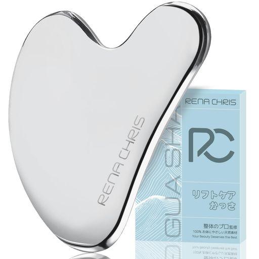 カッサ かっさプレート 頭皮マッサージ 顔 ボディ用 耐久性の高いメタル製 小顔 美顔 スキンケア 自宅エステ 上質なギフト ステンレス鋼 RENA CHRIS シルバー