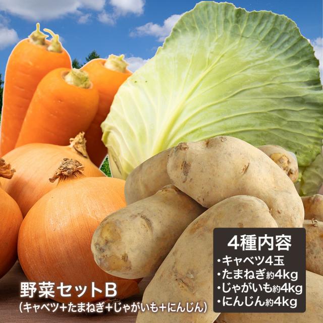野菜セットB(キャベツ4玉・たまねぎ約4kg・じゃがいも約4kg・にんじん約4kg)4種セット 【営業日当日発送】 きゃべつ 玉ねぎ ポテト 人参 定番 万能 おうちごはん おうち時間