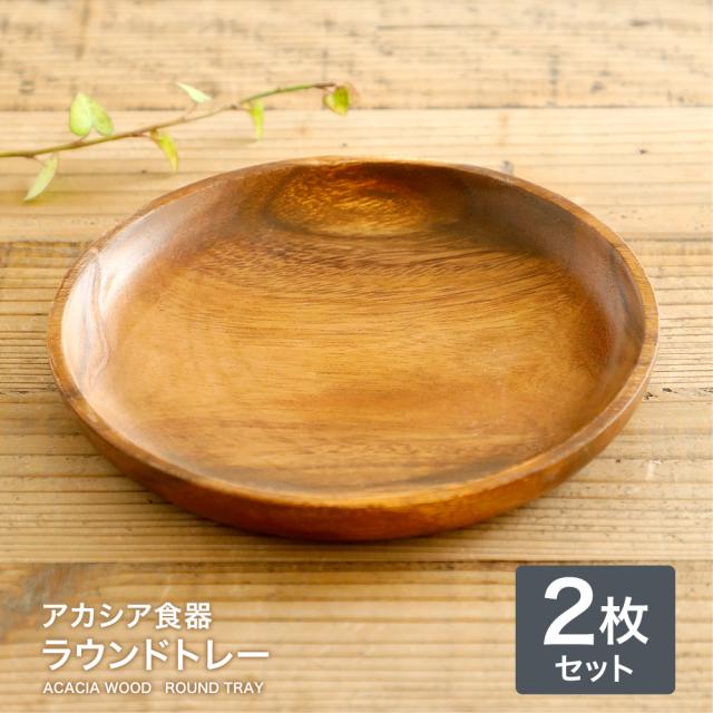 アカシア食器 ラウンドトレー (2枚セット) 食器 プレート アジアン食器 トレイ カフェ キッチン 木製 食器 おしゃれ ランチプレート