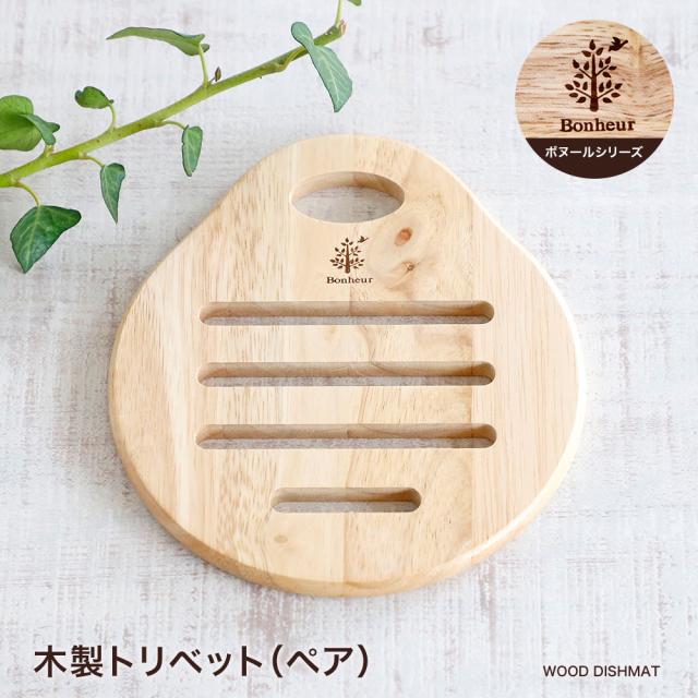 木製トリベット(ペア) ボヌール 鍋敷き おうち時間 おうちカフェ 木 ナチュラル 天然木 カフェ風 おしゃれ モダン 北欧 カフェ食器 デッシュマット