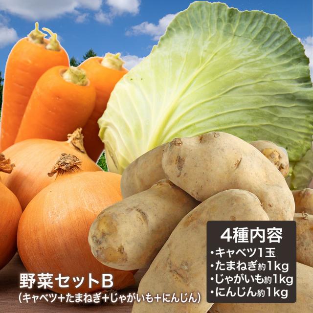 野菜セットB(キャベツ1玉・たまねぎ約1kg・じゃがいも約1kg・にんじん約1kg)4種セット 【営業日当日発送】 きゃべつ 玉ねぎ ポテト 人参 定番 万能 おうちごはん おうち時間