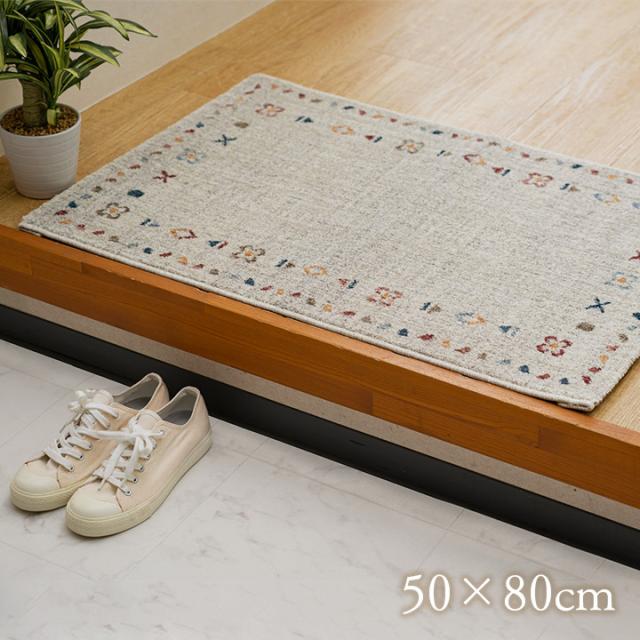 マイア 玄関 マット トルコ製 ウィルトン 織り 民族柄 エスニック シンプル 抗菌防臭 消臭 丈夫 ソファー前用 ベッドサイド用 50×80cm