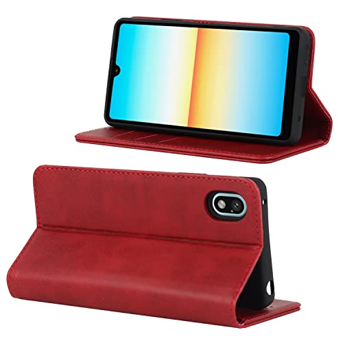 Xperia Ace III ケース エクスペリア エース III 5.5インチ ケース 手帳型 SO-53C SOG08 スマホカバー 合成皮革 + TPUケース 内蔵磁気 財布型カバー 収納ポケット 横置きスタンド機能 Xperia ace3 SO53C スマホケース 耐衝撃性 レッド