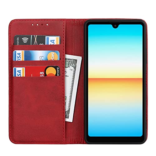 Xperia Ace III ケース エクスペリア エース III 5.5インチ ケース 手帳型 SO-53C SOG08 スマホカバー 合成皮革 + TPUケース 内蔵磁気 財布型カバー 収納ポケット 横置きスタンド機能 Xperia ace3 SO53C スマホケース 耐衝撃性 レッド 送料無料