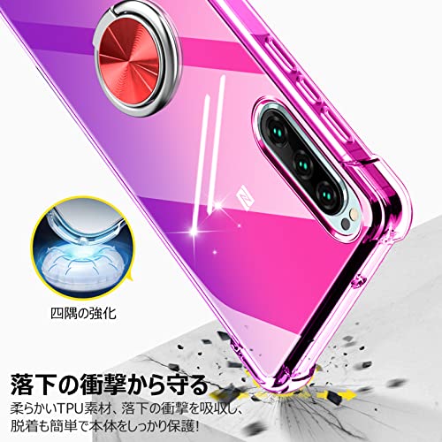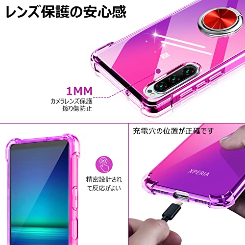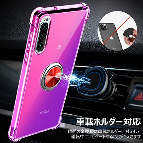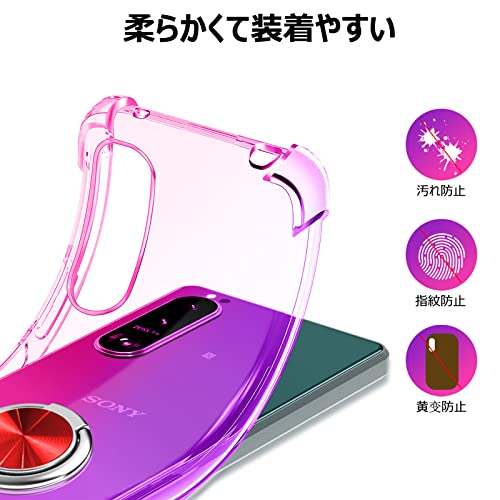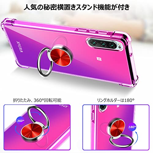 XPeria XZ ケース / XPeria XZS ケース クリア リング付き 耐衝撃 シリコン 軽量 薄型 スタンド機能 衝撃吸収 SO-01J SO-03J SOV34 SOV35 カバー TPU ソフト レンズ保護 滑り止め 黄ばみ防止 指紋防止 車載スタンド対応 透明 耐久 一体型スマホケース 紫