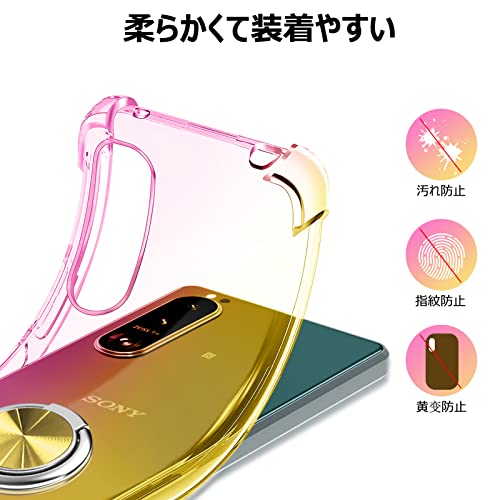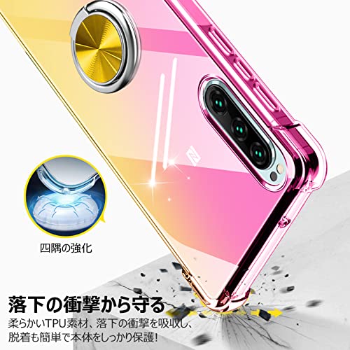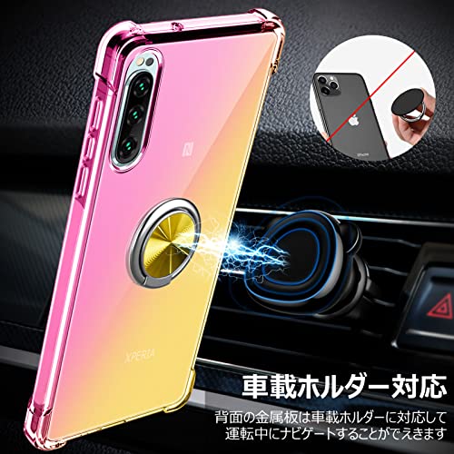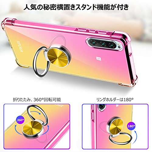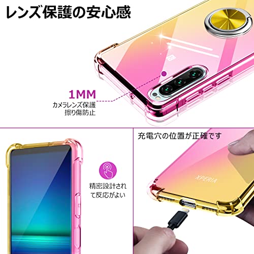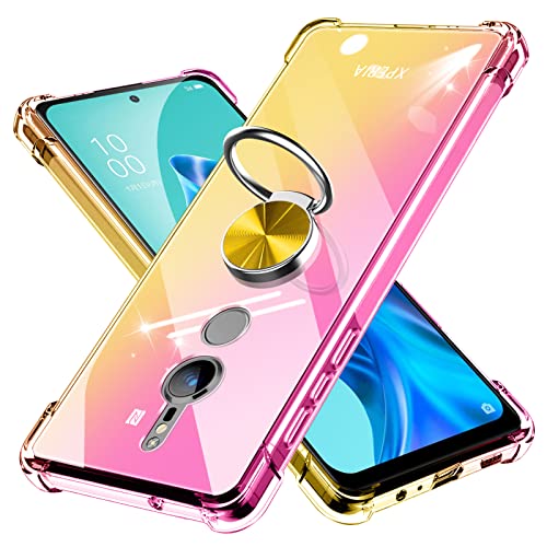 XPeria XZ2 ケース クリア リング付き 耐衝撃 シリコン 軽量 薄型 スタンド機能 衝撃吸収 SO-03K SOV37 カバー TPU ソフト レンズ保護 滑り止め 黄ばみ防止 指紋防止 車載スタンド対応 透明 耐久 一体型スマホケース 人気 おしゃれ 金 送料無料