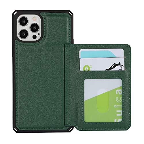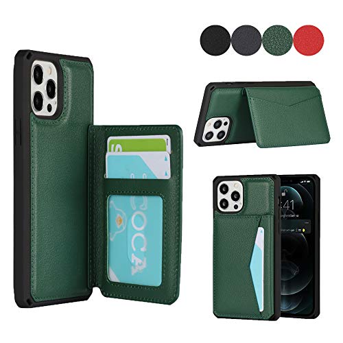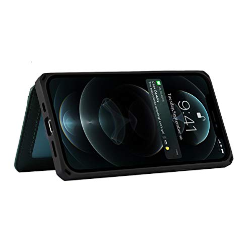 iPhone 12 /12 Pro ケース 手帳型 財布型 本革レザー カード収納 横置き機能 本革ケース Qi充電対応 背面ポケット付き 片手操作 耐久性 滑り止め 多機能 落下保護 iPhone 12 / iPhone12 Pro スマホカバー 6.1インチ-濃い緑色 送料無料