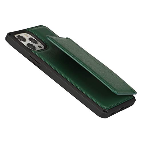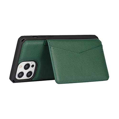iPhone 12 /12 Pro ケース 手帳型 財布型 本革レザー カード収納 横置き機能 本革ケース Qi充電対応 背面ポケット付き 片手操作 耐久性 滑り止め 多機能 落下保護 iPhone 12 / iPhone12 Pro スマホカバー 6.1インチ-濃い緑色