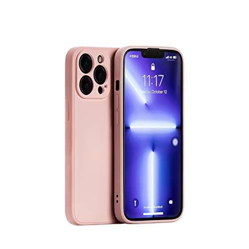 iPhone 13 Pro ケース 薄型 シリコン 耐衝撃 カメラレンズ保護 フルカバー (ピンク)