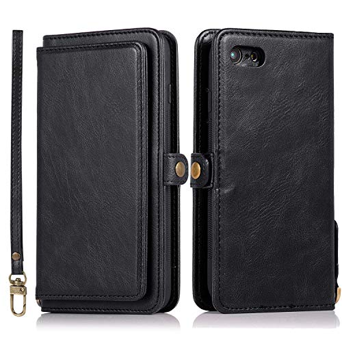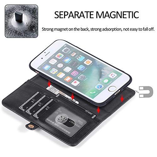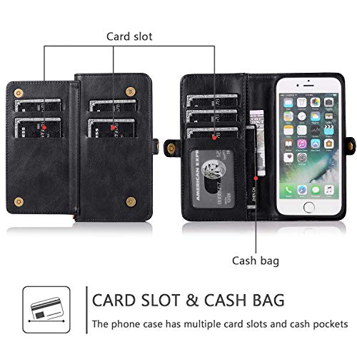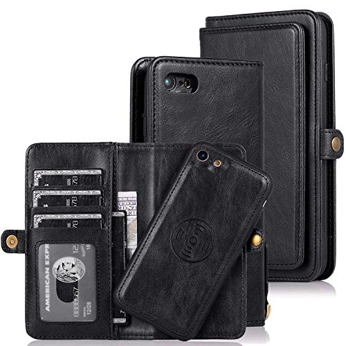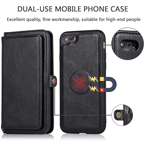 iPhone SE (第3世代) 2022 / iPhone SE (第2世代) 2020 ケース 手帳型 iPhone7 背面カバー iPhone8 PUレザー TPU 分離式 両用2way 取り外し自由 スマホカバー 財布型ICカード収納 お札入れ小銭入れ スタンド機能 縄掛けストラップ付き アイフォンSE2 / SE3 / 7 / 8(ブラック)