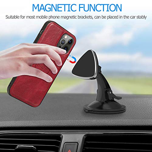 iPhone 12 / 12 Pro ケース 手帳型 背面カバー PUレザー TPU 分離式 両用 取り外し自由 スマホカバー 財布型ICカード収納 お札入れ小銭入れ スタンド機能 マグネット 縄掛けストラップ付き アイフォン12 / 12Pro 耐衝撃 耐汚れ 滑り防止 (レッド)