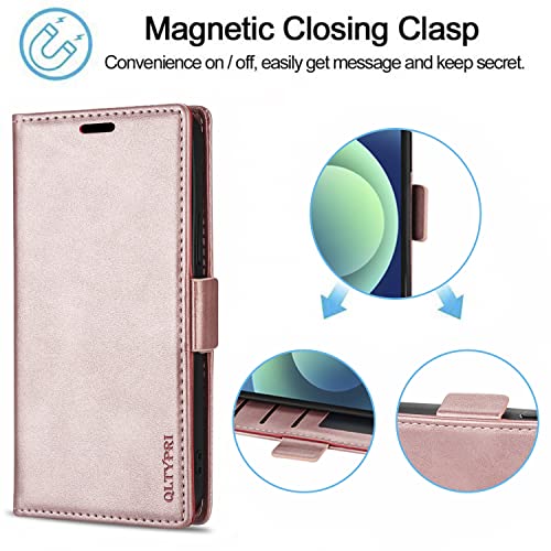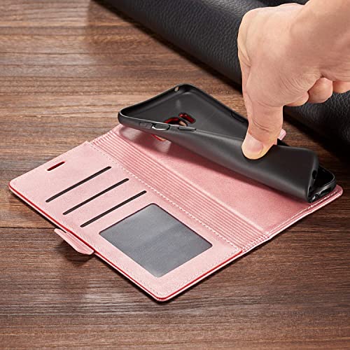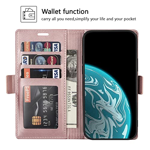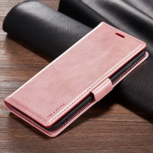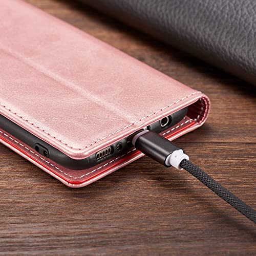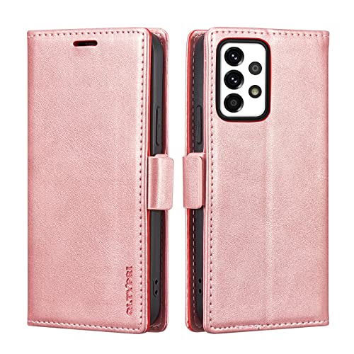 Galaxy A53 5G ケース 手帳型 財布型 良い手触りPUレザー ビジネスマン向き 耐衝撃 収納 横置き機能 折り畳み式 薄型軽量 ベルト付きマグネット スマホカバー - ローズゴールド