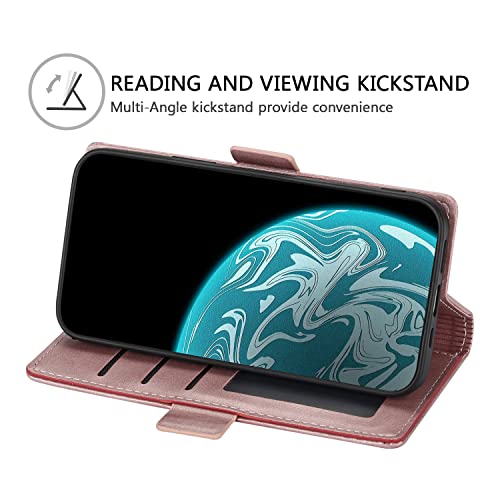 Galaxy A53 5G ケース 手帳型 財布型 良い手触りPUレザー ビジネスマン向き 耐衝撃 収納 横置き機能 折り畳み式 薄型軽量 ベルト付きマグネット スマホカバー - ローズゴールド 送料無料
