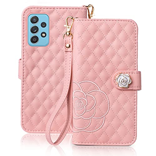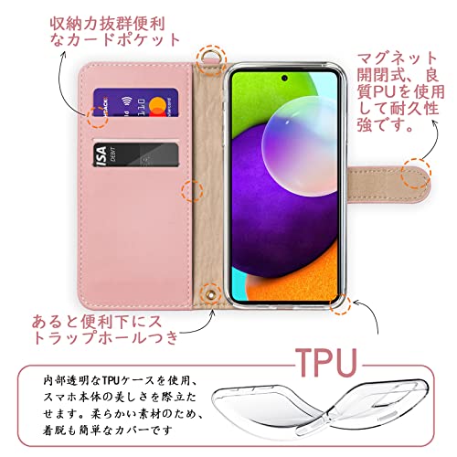 Galaxy A52 5G ケース 手帳型 SC-53B 手帳型ケース 薔薇 おしゃれ 花柄 ギャラクシーA52 軽量 可愛い 手触り 耐衝撃 カード収納 財布型 横置きスタンド機能 全面保護 ストラップホール付き (Galaxy A52 5G / SC-53B ピンク)