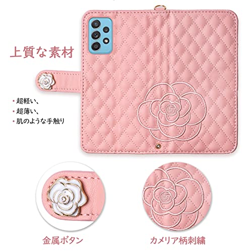 Galaxy A52 5G ケース 手帳型 SC-53B 手帳型ケース 薔薇 おしゃれ 花柄 ギャラクシーA52 軽量 可愛い 手触り 耐衝撃 カード収納 財布型 横置きスタンド機能 全面保護 ストラップホール付き (Galaxy A52 5G / SC-53B ピンク) 送料無料