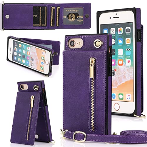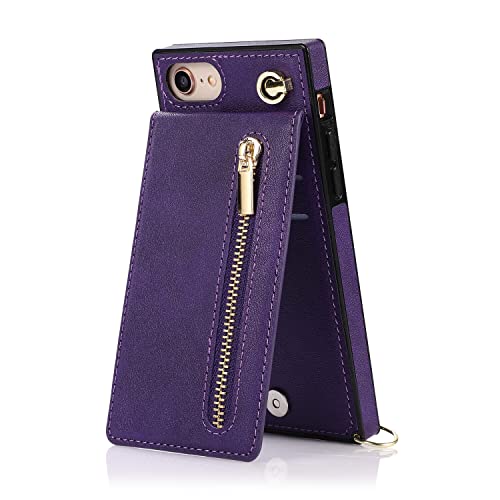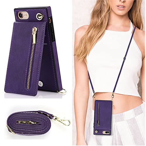 iPhone SE 2020 第2世代 / SE 2022 第3世代 ケース縄掛け iPhone 7 / 8 ケース 手帳型 iPhone 6 / iPhone 6s 財布型ケース 肩掛け ストラップ付き 背面カバー スマホカバー PUレザー ICカード収納 お札入れ小銭入れ 磁気ボタン スタンド機能 アイフォンSE2 / SE3 / 6 / 6S / 7 / 8 スマホケース 耐衝撃 上下開-パープル
