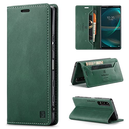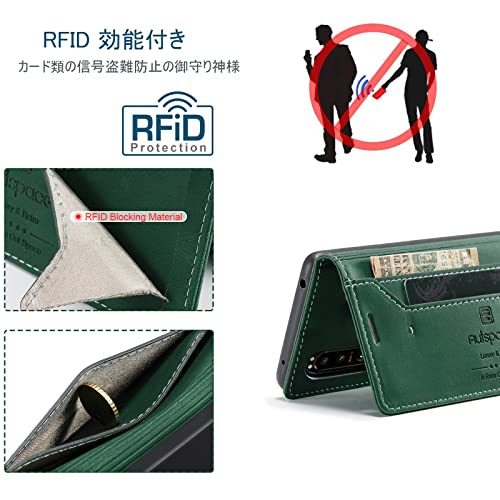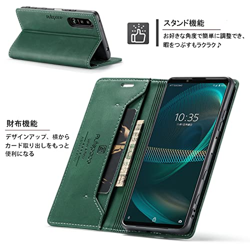 Xperia 5 III ケース 手帳型 Xperia 5 III Lite 手帳型ケース SO-53B SOG05 ケース xperia 5 iii 手帳型 RFID 磁気防止 スキミング防止 マグネット式 スタンド機能 薄型 (Xperia 5 III SO-53B SOG05対応) レトログリーン 送料無料