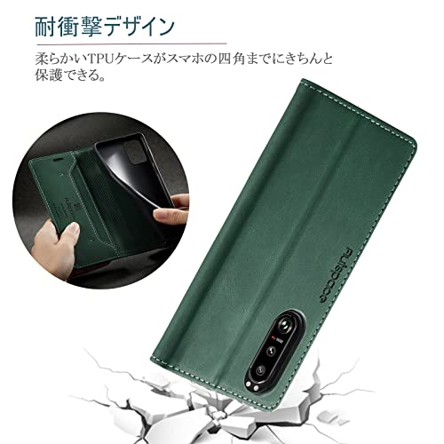 Xperia 5 III ケース 手帳型 Xperia 5 III Lite 手帳型ケース SO-53B SOG05 ケース xperia 5 iii 手帳型 RFID 磁気防止 スキミング防止 マグネット式 スタンド機能 薄型 (Xperia 5 III SO-53B SOG05対応) レトログリーン