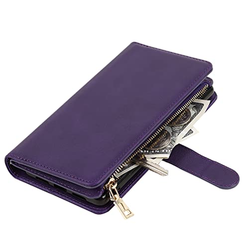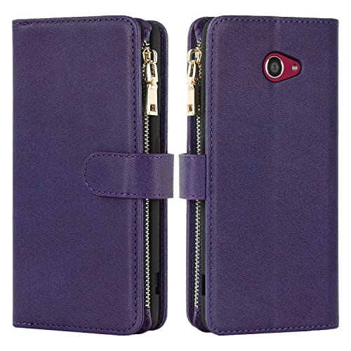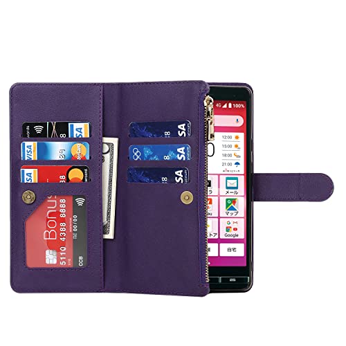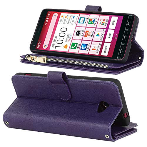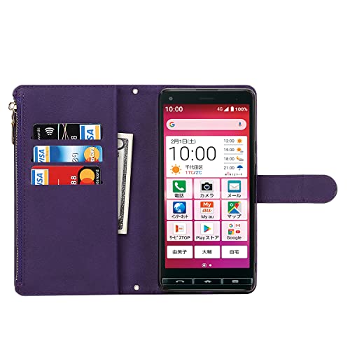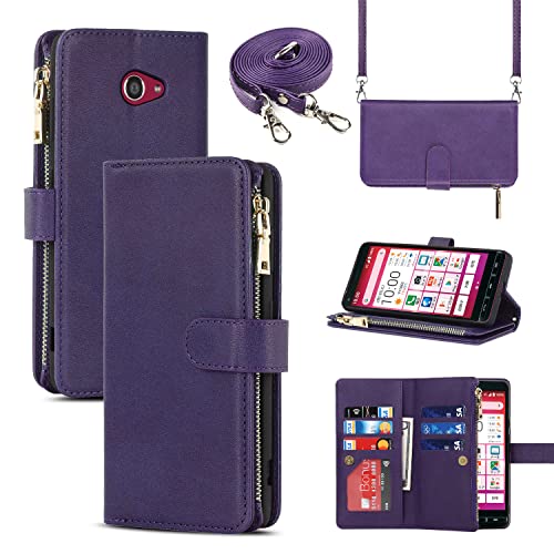 KYOCERA BASIO4 KYV47 ケース 手帳型 縄掛け かんたんスマホ2 A001KC 肩掛け 斜めがけ ショルダー TPU PUレザー マグネット 財布型 お札 小銭 大容量 収納 スタンド ストラップ付き 落下防止 耐衝撃 全面保護 (肩縄付き-パープル)